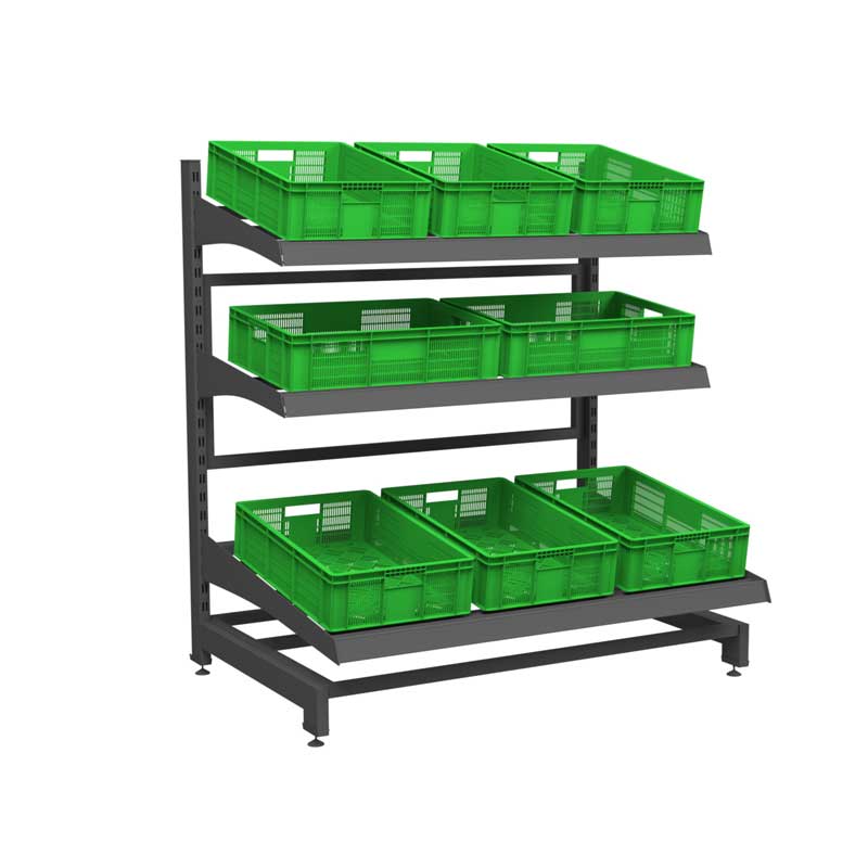 ხილ-ბოსტნეულის სტელაჟი ტევადი და კომფორტულია. აქვს 3 თარო: ზედა 2 თარო სიღრმით 58სმ. + 1 ქვედა 90სმ.