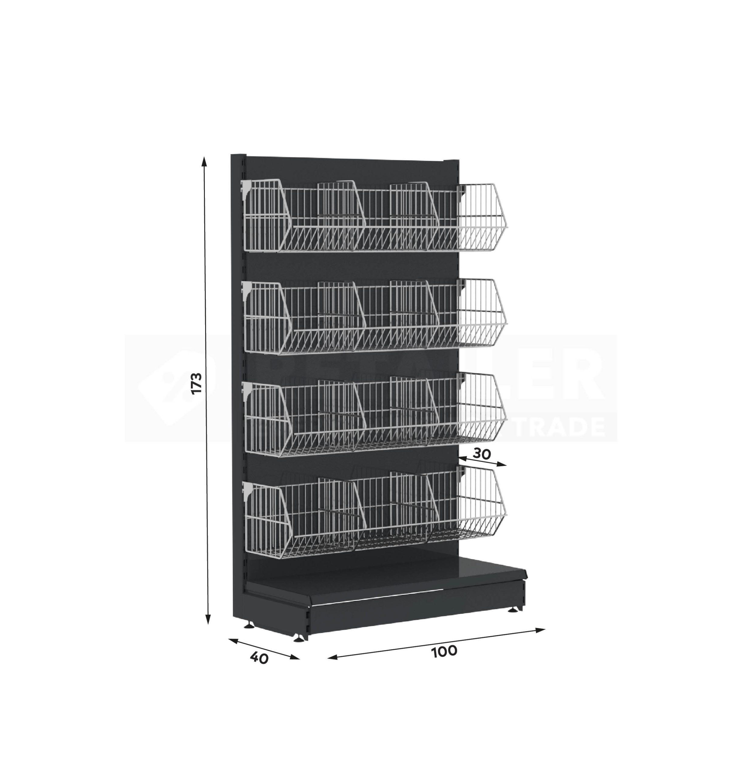 სტელაჟი ცალმხრივი 173/100/40/30*4 ბადისებრი თაროებით