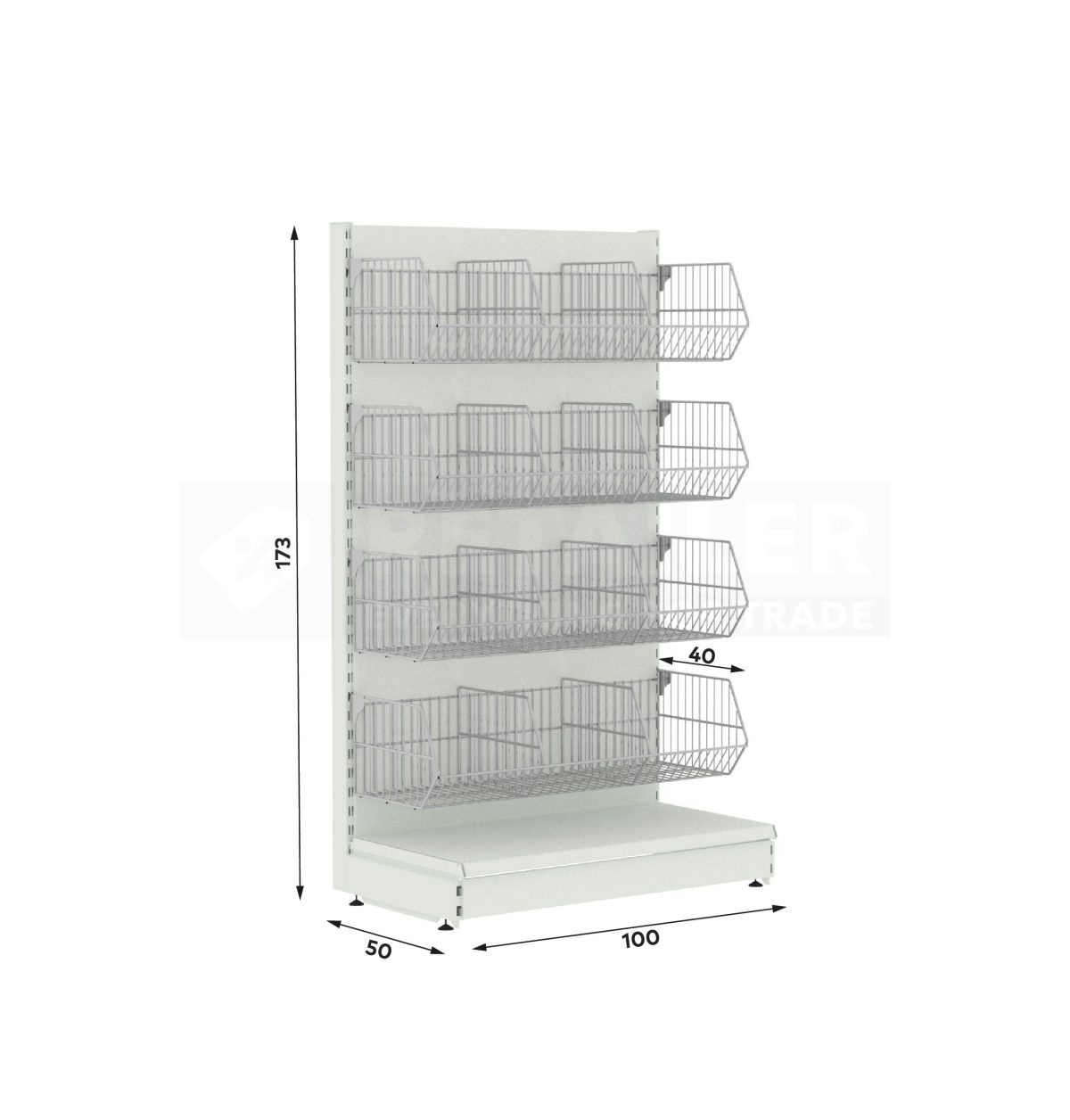 სტელაჟი ცალმხრივი 173/100/50/40*4 ბადისებრი თაროებით
