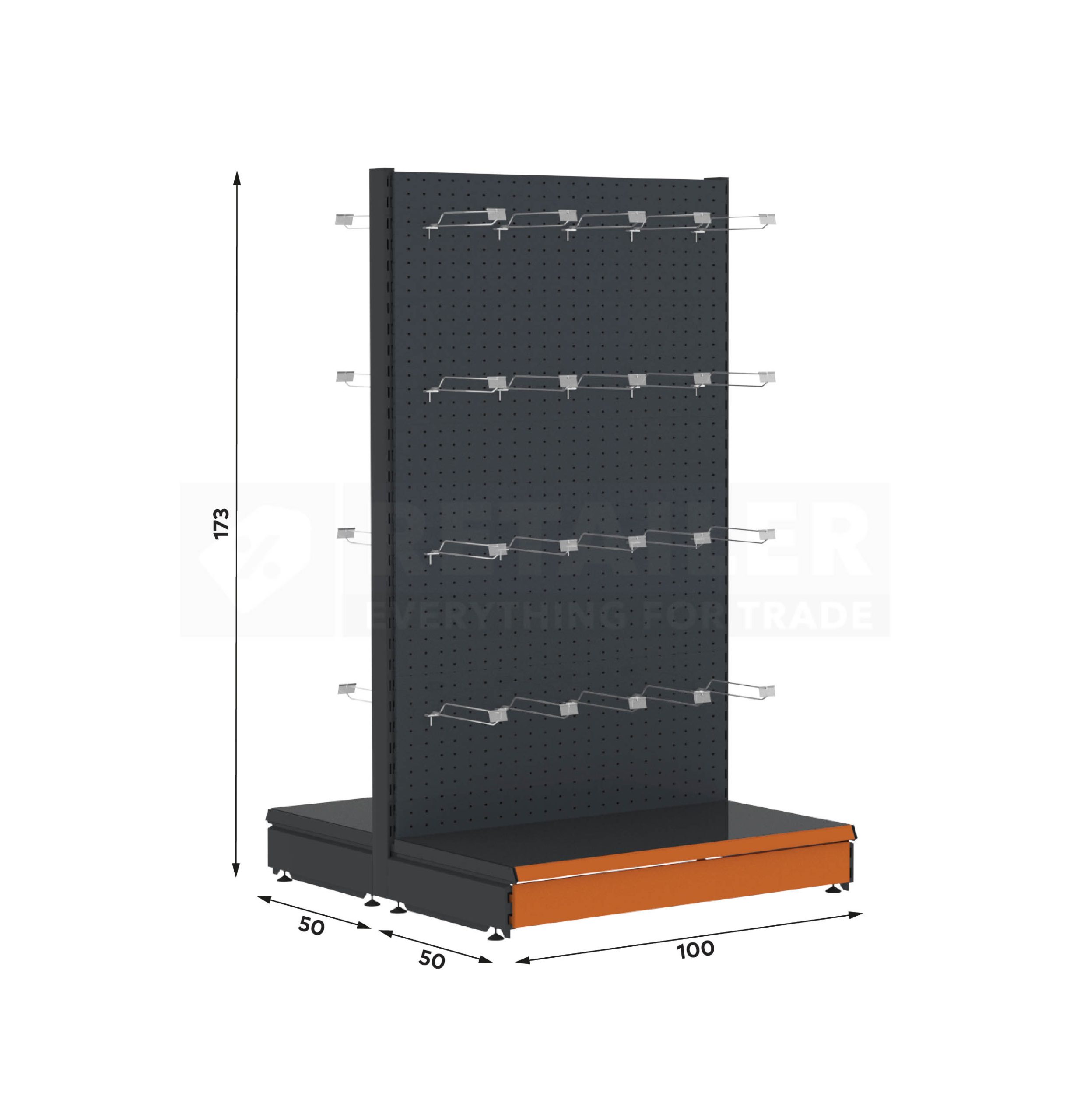 უკანა პანელი დახვრეტილია, რაც საშუალებას გაძლევთ დაამაგროთ კაუჭები პროდუქციის ჩამოსაკიდად.