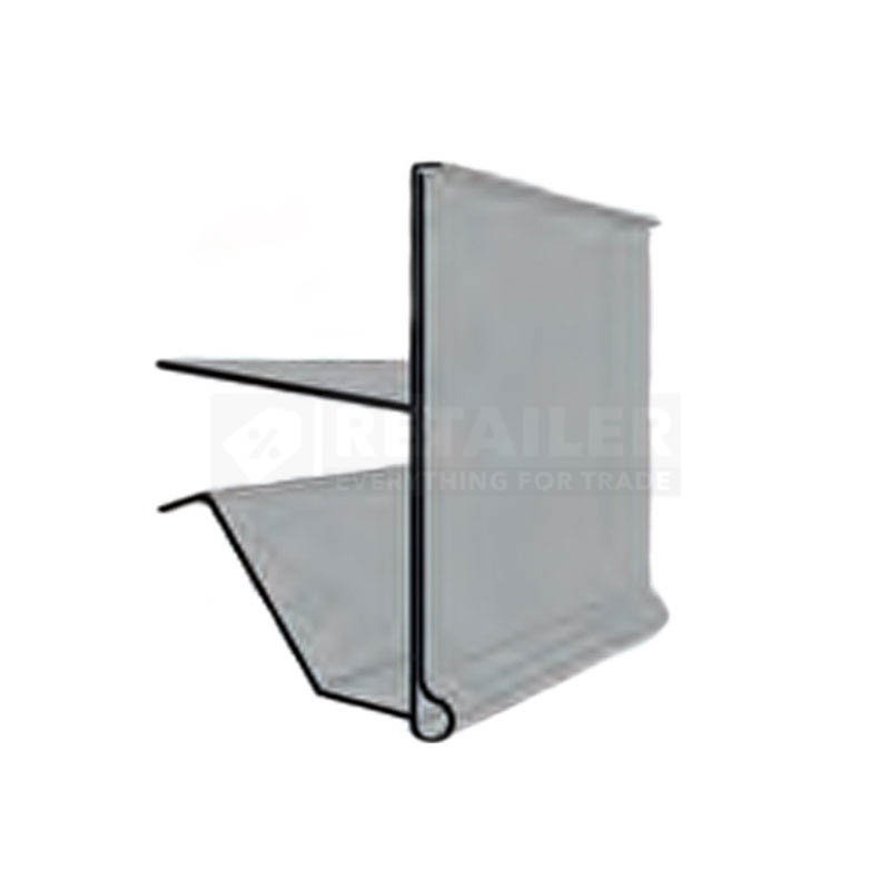 ფასმაჩვენებლის დამჭერი წინა შემზღუდველით 20მმ. სისქის ბადისებური და შუშის თაროებისთვის.